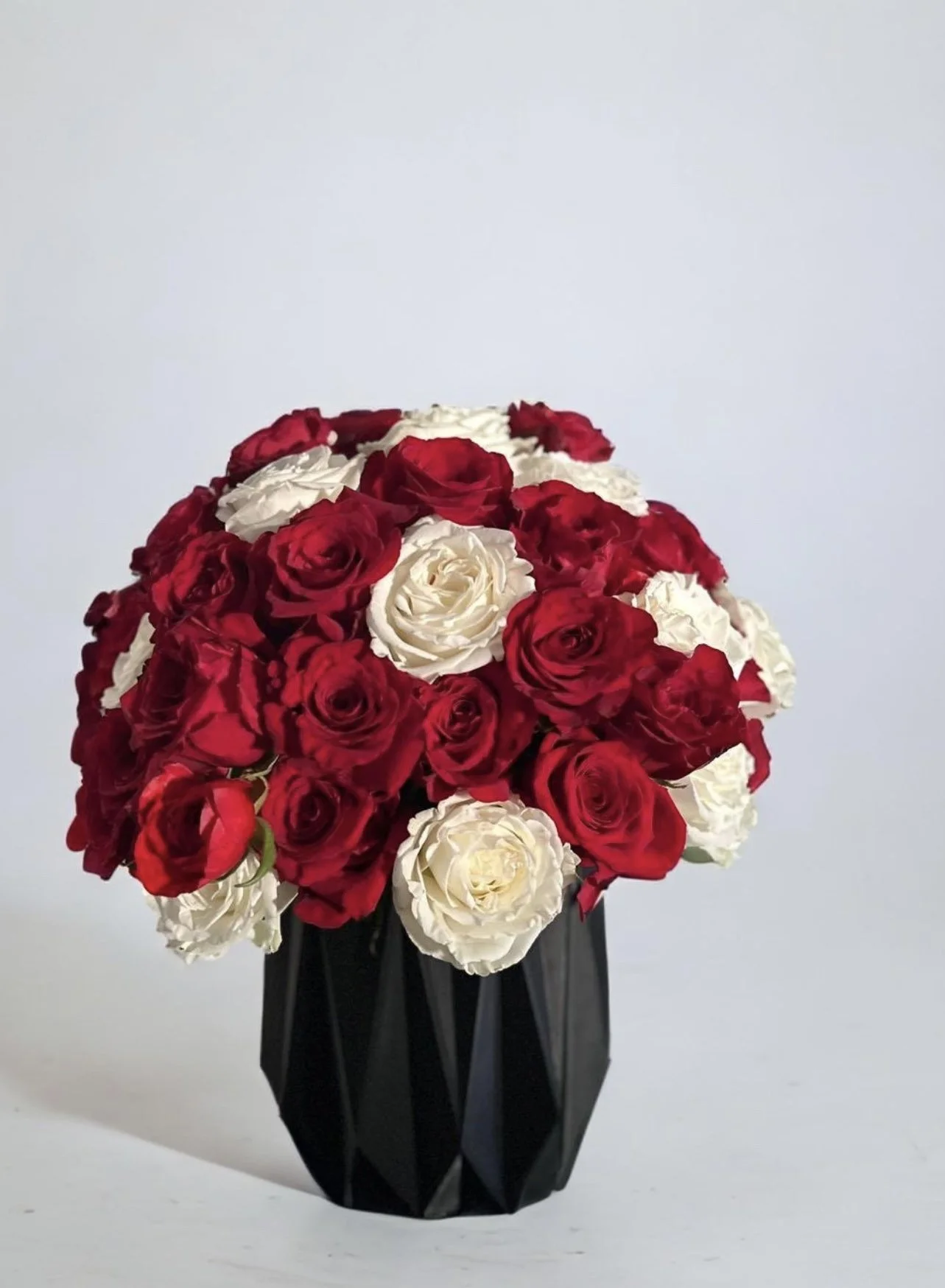 Shop › Image 1 of 1 from $250.00 Modern Black Box, Red and White roses. Size: Select Size Small Medium Large Quantity: Add To Cart Added! Modern Black Box, Red and White roses.
